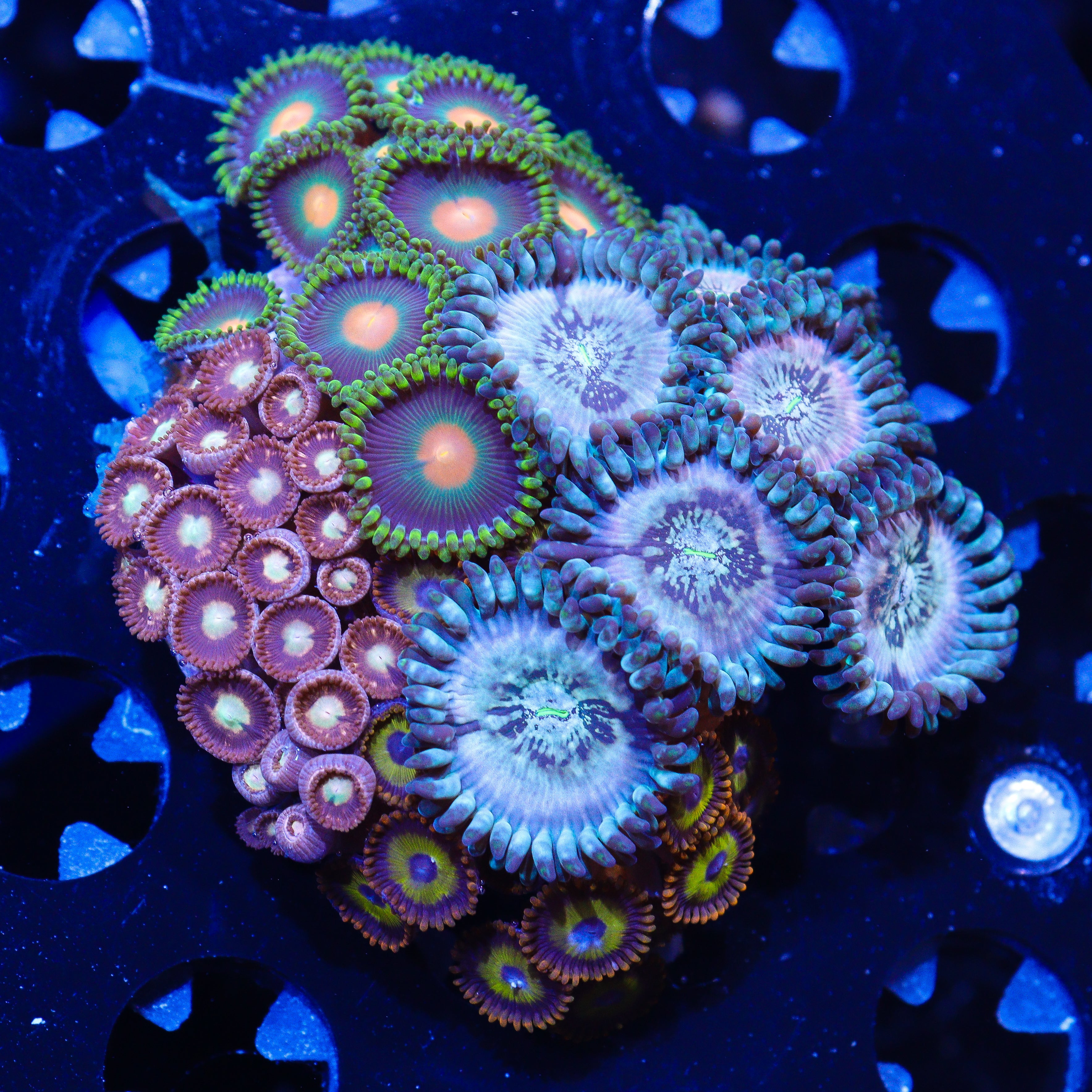 You will receive a plate with 4 different types of Zoanthids. These make a great starter for newer aquariums.