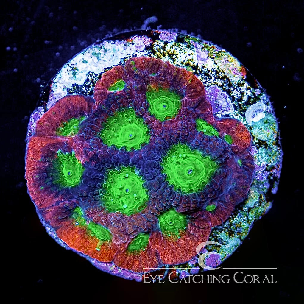 Aquacultured by Eye Catching Coral. We can almost always get these on short notice if the shop is out of stock. Please be patient if by chance ECC is low on inventory and we need a bit of time to get more. Photos used with permission.